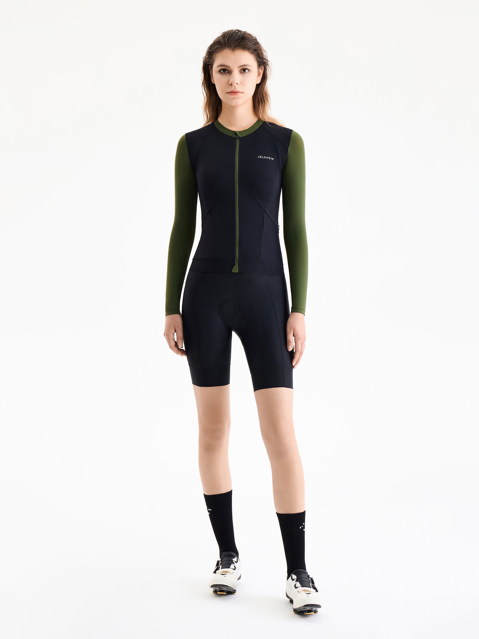 This soft, skin-friendly, quick-drying, and natural-cooling long-sleeve jersey with UPF 50+ is ideal for everyday training. Pair it with Jelenew Lighting Insulated Gilet for a late spring/early fall adaptive kit.
